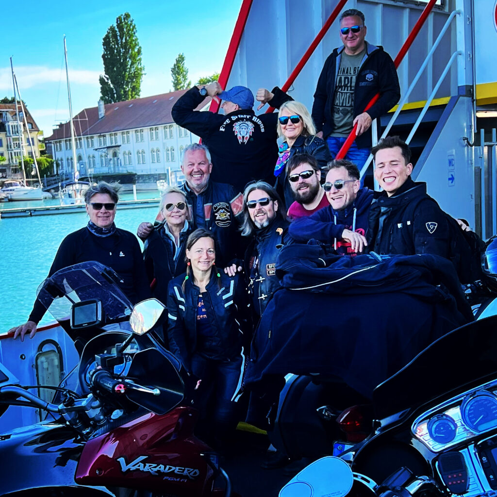 2022 haben wir nach Corona das erste Mal eine gemeinsame Tour organisiert und die Mitglieder kamen von Nah und Fern – wobei es so richtig nah für Keinen war. Wir haben uns getroffen und sind dann eine Rundtour gefahren, die am Bodensee auf der Schweizer Seite gestartet ist! Aber schon die Anreise war für Einige ein Erlebnis – Freiheit, Wind um die Ohren, Pässe und tolle Landschaften …
